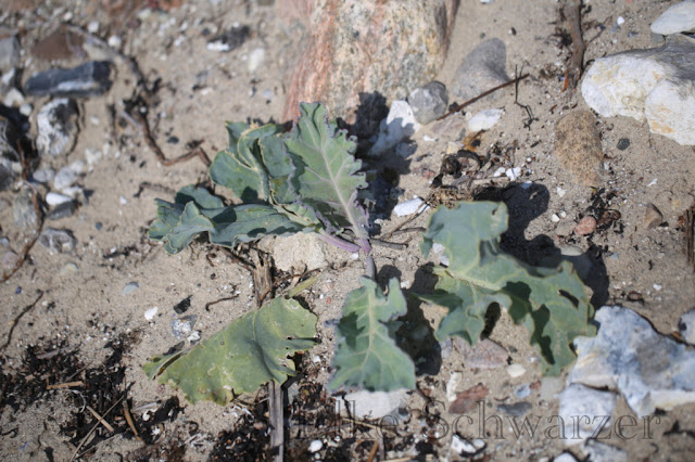 Manche Raupen waren viel kleiner, einige hatten schon einen Kokon einer Schlupfwespe an ihrem Pelz. Das habe ich aber erst bei einem Tier entdeckt, als ich ein anderes aus der Brandung gerettet hatte. Sofort hatte ich ein schlechtes Gewissen - vielleicht war das auch sehr mickrige Exemplar parasitiert und wollte in der Ostsee Selbstmord begehen? Jetzt konnte es dank mir noch mal den langen Fußmarsch antreten.